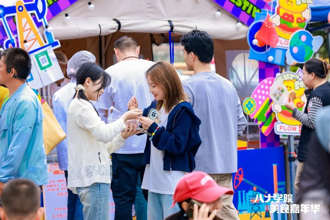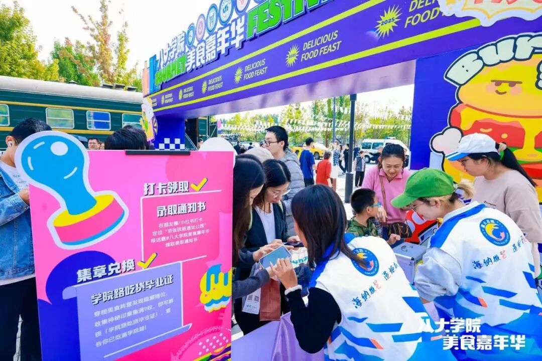 美食嘉年华的设计充满巧思。一张设计精巧的“八大学院美食录取通知书”,一套趣味十足的打卡集章系统,让市民在品尝美食的同时,完成了一次沉浸式的高校文化体验。活动现场,一位母亲带着孩子成功猜中中国农业大学摊位上“大豆能做什么”的问题,盖到了第一枚纪念章。孩子兴奋地追问:“农业大学是不是天天研究好吃的?”