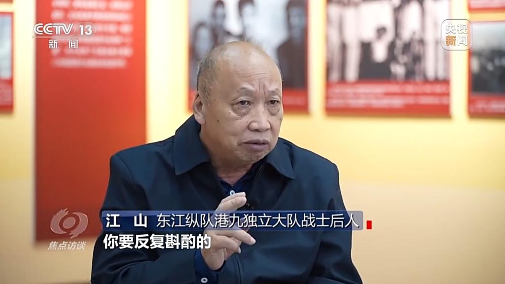 江山:美国飞行员很好奇,就住在大队部,他就问翻译,他说我没见过你们的军装什么样的,东江纵队是没军装的,他说你们的军装是什么样,翻译就跟他讲,黑夜就是我们的军装,我们利用黑夜来跟日本人进行斗争。